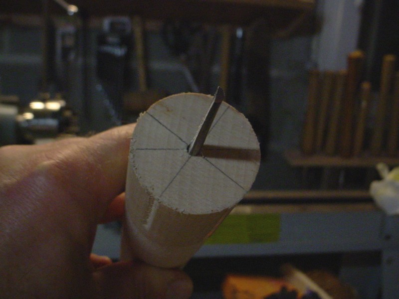 The end is then beveled so as to have a sharp edge on the left.