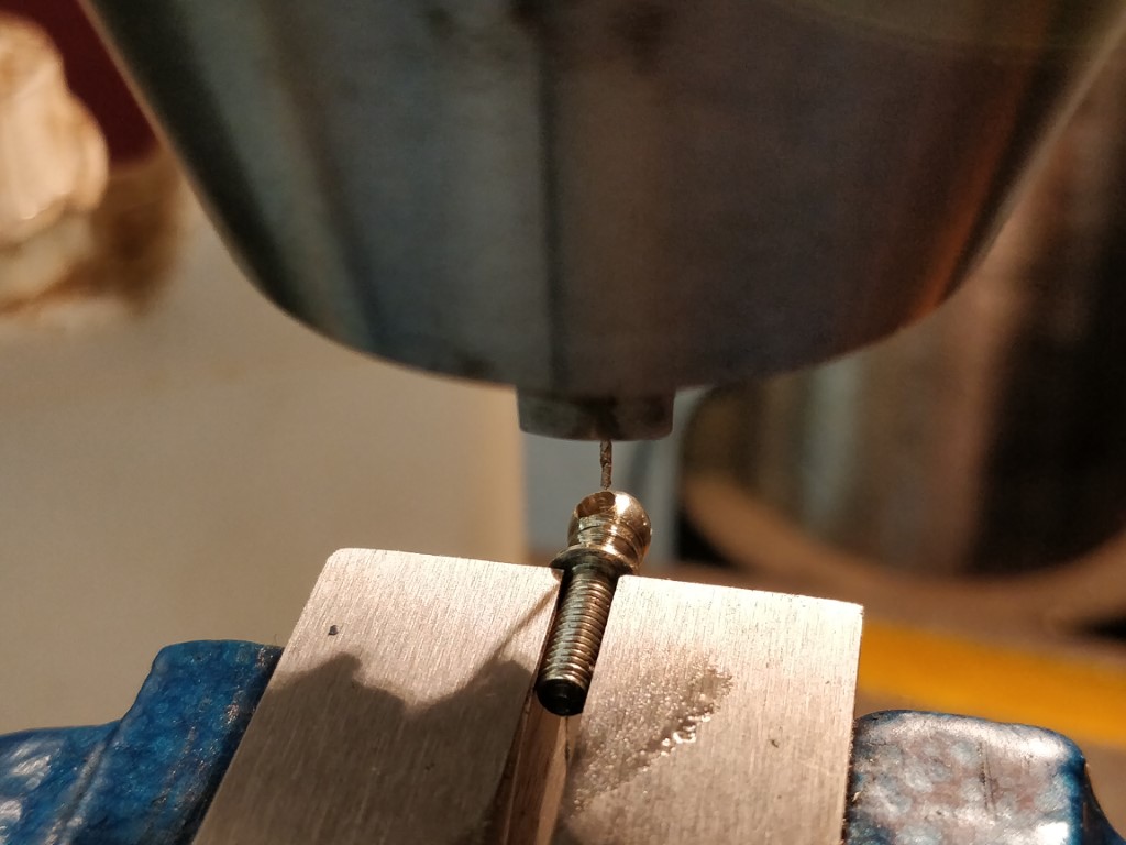 Perçage diamètre 0.6 du trou du ressort sur la boule. C’est l’étape la plus délicate !