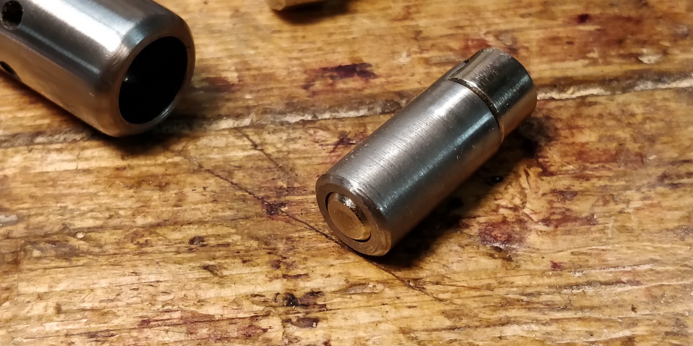 Partant d’un boulon, tournage au rond de deux écrous, et alésage central.